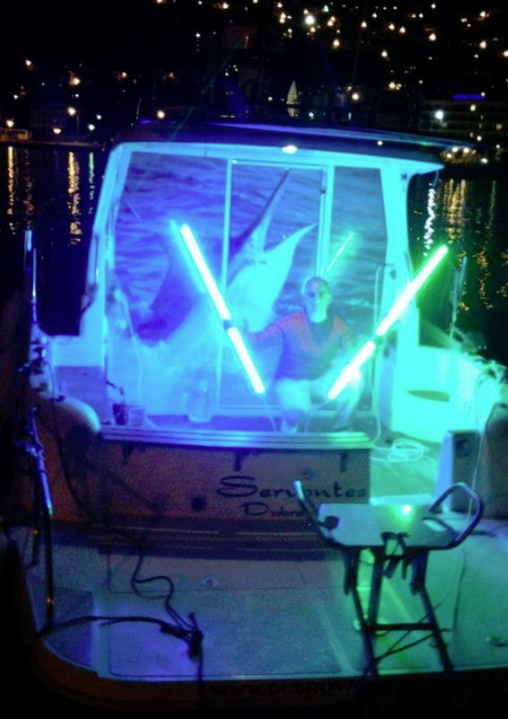 Night fishing (night drifting), similar to the daily drifting but the primary goal of this method of fishing is swordfish. Fairly good results are achieved for the moonless night. Night fishing is very attractive because we are looking for big fish. Extremely dynamic fishing in the dark with the help of reflectors, makes this fish special and unique in the Adriatic. The maximum number of persons: 5 + skipper + sailor.